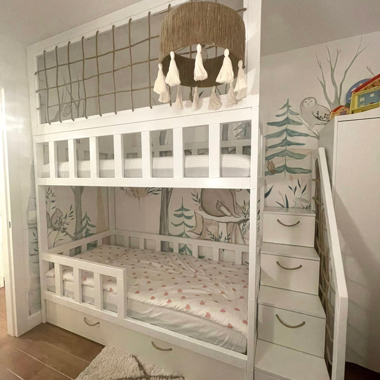 Dečiji krevet na sprat sa zaštitnom mrežom i sa stepenicama fiokama HUGO